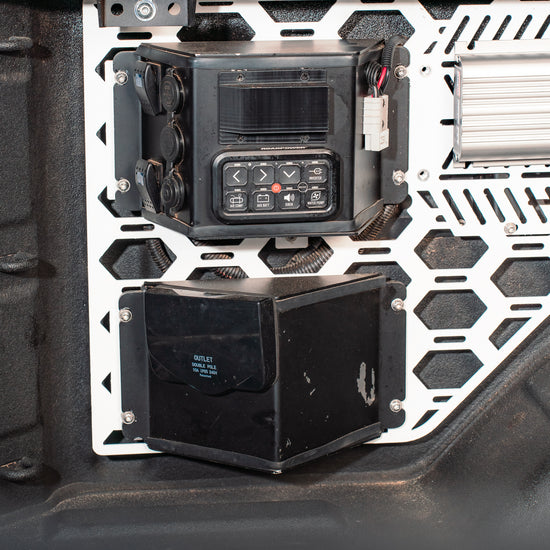 If you have a twin battery setup with an inverter, the Mate Designs 240V Power Point Pocket is the perfect way to bring mains power to the back of your vehicle. Designed to mount seamlessly onto the Mate Designs Molle Panel, this pocket allows you to install a Twin 240V Power Point, giving you the ability to cook, blend, and charge wherever your adventures take you.